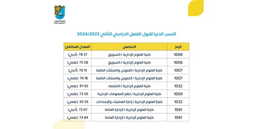 كما أشار إلى أن قبول الطلبة الأجانب الدراسين على نفقتهم الخاصة قد تم وفقًا لترتيب رغباتهم في ضوء العدد المعتمد للقبول في كلية العلوم الإدارية وذلك وفقًا لقرار مجلس الجامعة ومجلس الجامعات الحكومية، مع الأخذ بعين الاعتبار الحدود الدنيا لقبول الطلبة الكويتيين في الكلية وسياسة القبول للعام الجامعي 2023/2024 التي تنص على أنه “يشترط لقبـول أي طالب غير كويتي في أي من تخصصات الجامعة ألاّ تقل نسبته في شهـادة الثانوية أو معدله المكافئ عن أدنى نسبة للطلبة الكويتيين المقبولين في نفس التخصص”.
