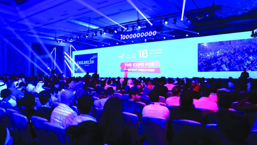 وتعد «قمة المليار متابع» المنصة الأكبر عالمياً التي تجمع صناع المحتوى والخبراء وأصحاب التجارب من مختلف المجالات في مكان واحد، لبحث ومناقشة تحديات الصناعة واستكشاف توجهاتها ورصد مساهمتها في المشهدين الاقتصادي والاجتماعي، وتقام النسخة الثانية في أبراج الإمارات ومتحف المستقبل في دبي بحضور 7000 مشارك، من بينهم أكثر من 3000 صانع محتوى ومؤثر ومبدع، وما يزيد على 190 متحدثاً.