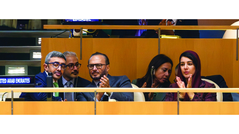 وكانت دولة الإمارات قد شاركت في رعاية مشروع القرار، الذي اعتمدته الجمعية العامة للأمم المتحدة، قبيل انعقاد المؤتمر، وصوّتت إلى جانب 142 دولة لمصلحة اعتماد «إعلان نيويورك بشأن التسوية السلمية لقضية فلسطين وتطبيق حل الدولتين».