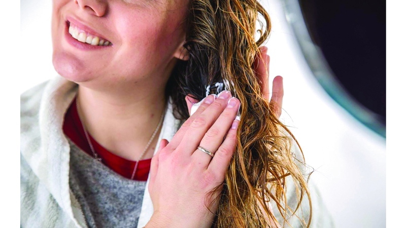 ولهذا الغرض، ينبغي تجنب مستحضرات الشامبو الشديدة، التي تهيّج البشرة، وبدلاً من ذلك، ينصح باستخدام شامبو يحتوي على تركيبات لطيفة ذات رقم هيدروجيني (pH) محايد. ويُراعى تدليك فروة الرأس بلطف بأطراف الأصابع أثناء الغسل، حيث يعمل ذلك على تحفيز الدورة الدموية.