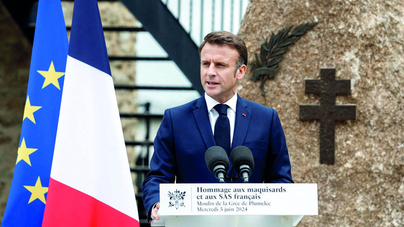 وتجمع قادة العالم مع ماكرون في «بريتاني»، أول من أمس، بهدف تكريم أولئك الذين شاركوا في إنزال قوات الحلفاء في السادس من يونيو عام 1944. وسقطت أول ضحية من قوات الحلفاء في بلدة تعرف باسم «بلوميليك» في السادس من يونيو عام 1944، وخاطب الرئيس ماكرون الجنود، متحدثاً عن التضحيات التي قدمها الحلفاء قبل 80 عاماً.