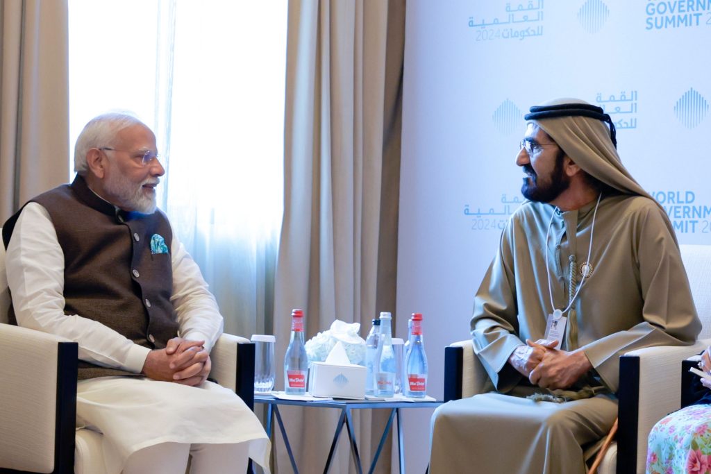 التقى صاحب السمو الشيخ محمد بن راشد آل مكتوم، نائب رئيس الدولة رئيس مجلس الوزراء حاكم دبي، رعاه الله، اليوم (الأربعاء)، بحضور سمو الشيخ حمدان بن محمد بن راشد آل مكتوم، ولي عهد دبي رئيس المجلس التنفيذي لإمارة دبي، دولة ناريندرا مودي رئيس وزراء جمهورية الهند الصديقة الذي يزور الدولة للمشاركة كضيف شرف في القمة العالمية للحكومات 2024 التي انطلقت 12 فبراير الجاري في دبي تحت شعار “استشراف حكومات المستقبل” وتختتم اليوم الأربعاء.
