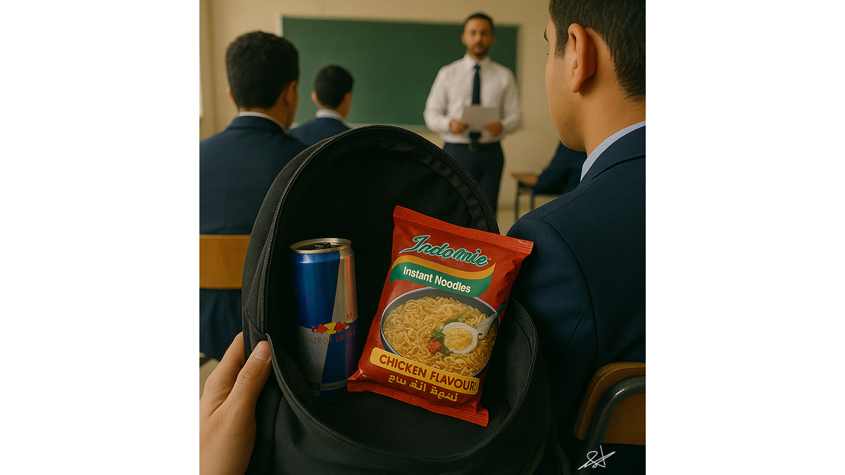 وأوضحت أن بعض الطلبة يحضرون مشروب «الماتشا» داخل أكواب عازلة للحرارة ليظل ساخناً حتى نهاية اليوم الدراسي، فيما تعاد تعبئة مشروب الطاقة في زجاجات مياه شخصية ليبدو كأنه ماء، كما تتسلل عبوات «الإندومي» الجافة إلى الحقائب لتؤكل كوجبة «مقرمش»، أو مطبوخة في أكواب حفظ الحرارة، ويجد الشيبس الحار طريقه إلى المدرسة ملفوفاً داخل خبز «تورتيلا» بعناية.