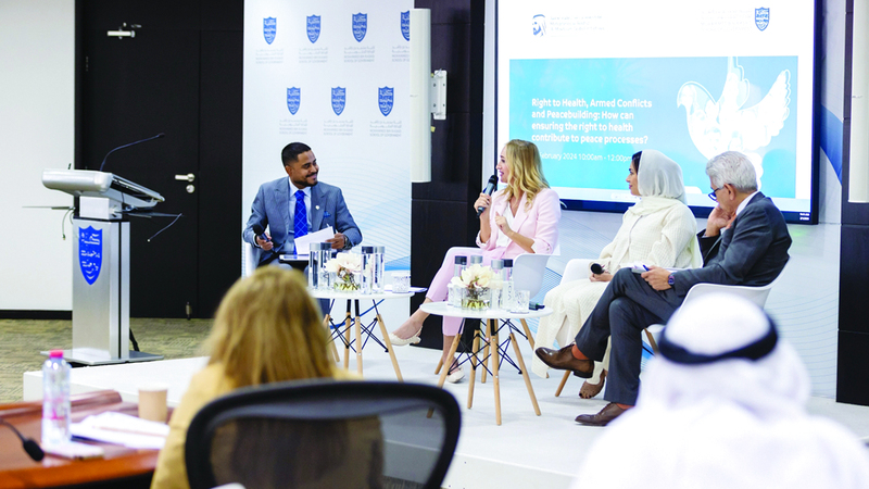 وشارك في الجلسة التي انعقدت بعنوان «الحق في الصحة وبناء السلام في ظل التوترات الجيوسياسية»، وأدارها الأستاذ في بحوث الأنظمة والسياسات الصحية بكلية محمد بن راشد للإدارة الحكومية، البروفيسور إيمانويل أزاد مونيسار، خبراء في تخصصات عدة من بينهم الرئيس التنفيذي للمدينة العالمية للخدمات الإنسانية في دبي، جوزيبي سابا، والمدير التنفيذي لمركز جنيف لحقوق الإنسان والحوار العالمي في سويسرا، الدكتور أوميش بالوانكار، ورئيسة قسم السياسات والمعايير الصحية في هيئة الصحة بدبي، الدكتورة خلود الصايغ، ومديرة بعثة اللجنة الدولية للصليب الأحمر في الإمارات، كلير دالتون.