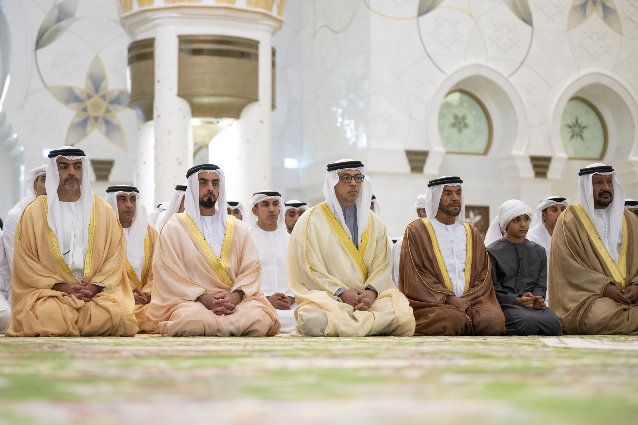 أدى سمو الشيخ منصور بن زايد آل نهيان، نائب رئيس الدولة، نائب رئيس مجلس الوزراء، رئيس ديوان الرئاسة، وسمو الشيخ خالد بن محمد بن زايد آل نهيان، ولي عهد أبوظبي، صلاة عيد الأضحى المبارك، اليوم، مع جموع المصلين في جامع الشيخ زايد الكبير في مدينة أبوظبي.