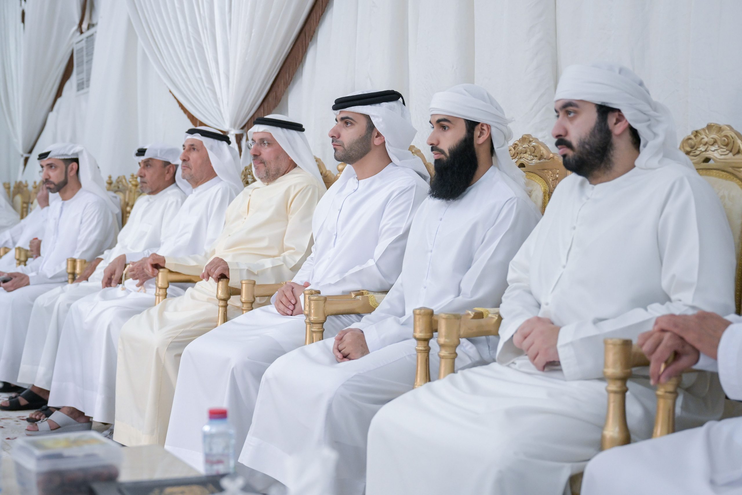 قدّم سمو الشيخ منصور بن محمد بن راشد آل مكتوم، رئيس مجلس دبي الرياضي، اليوم (الثلاثاء)، واجب العزاء في وفاة المغفور له بإذن الله تعالى خالد عبيد أحمد عبيد المطيوعي، وذلك خلال زيارة سموه إلى مجلس العزاء في دبي.