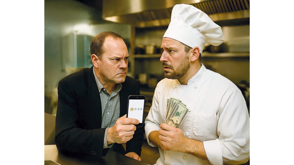 لم يعد التقييم الإلكتروني مجرد ملاحظة يتركها زبون على صفحة مطعم أو شركة خدمات، فقد تحوّل في حالات عدة إلى أداة مساومة أو ضغط تهدد أصحاب الأعمال، بعدما اكتشف البعض أن «نجمة واحدة» كفيلة بخفض الحجوزات، وإرباك المشروعات الصغيرة، وفتح الباب أمام نوع جديد من الابتزاز الرقمي.