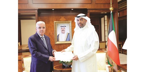 وقال بيان صحافي صادر عن وزارة الخارجية إن تسلم الرسالة جاء خلال استقبال الوزير اليحيا سفير دولة فلسطين لدى الكويت رامي طهبوب في ديوان عام وزارة الخارجية.