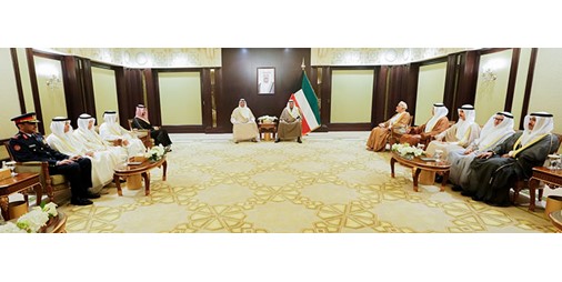 استقبل سمو ولي العهد الشيخ صباح الخالد، بقصر بيان صباح اليوم، وزير الدفاع الشيخ عبدالله الصباح ووزير الدولة لشؤون الدفاع في دولة الإمارات العربية المتحدة محمد المزروعي ووزير شؤون الدفاع في مملكة البحرين الفريق الركن عبدالله النعيمي ووزير الدفاع في المملكة العربية السعودية صاحب السمو الملكي الأمير خالد بن سلمان آل سعود ونائب رئيس الوزراء لشؤون الدفاع في سلطنة عمان صاحب السمو السيد شهاب بن طارق آل سعيد، ونائب رئيس مجلس الوزراء ووزير الدولة لشؤون الدفاع بدولة قطر الشيخ سعود بن عبدالرحمن بن حسن آل ثاني ومعالي الأمين العام لمجلس التعاون لدول الخليج العربية جاسم محمد البديوي وسعادة رئيس الأركان العامة للجيش الفريق ركن خالد الشريعان وذلك بمناسبة انعقاد الدورة ال22 لمجلس الدفاع المشترك بدول مجلس التعاون لدول الخليج العربية في البلاد.