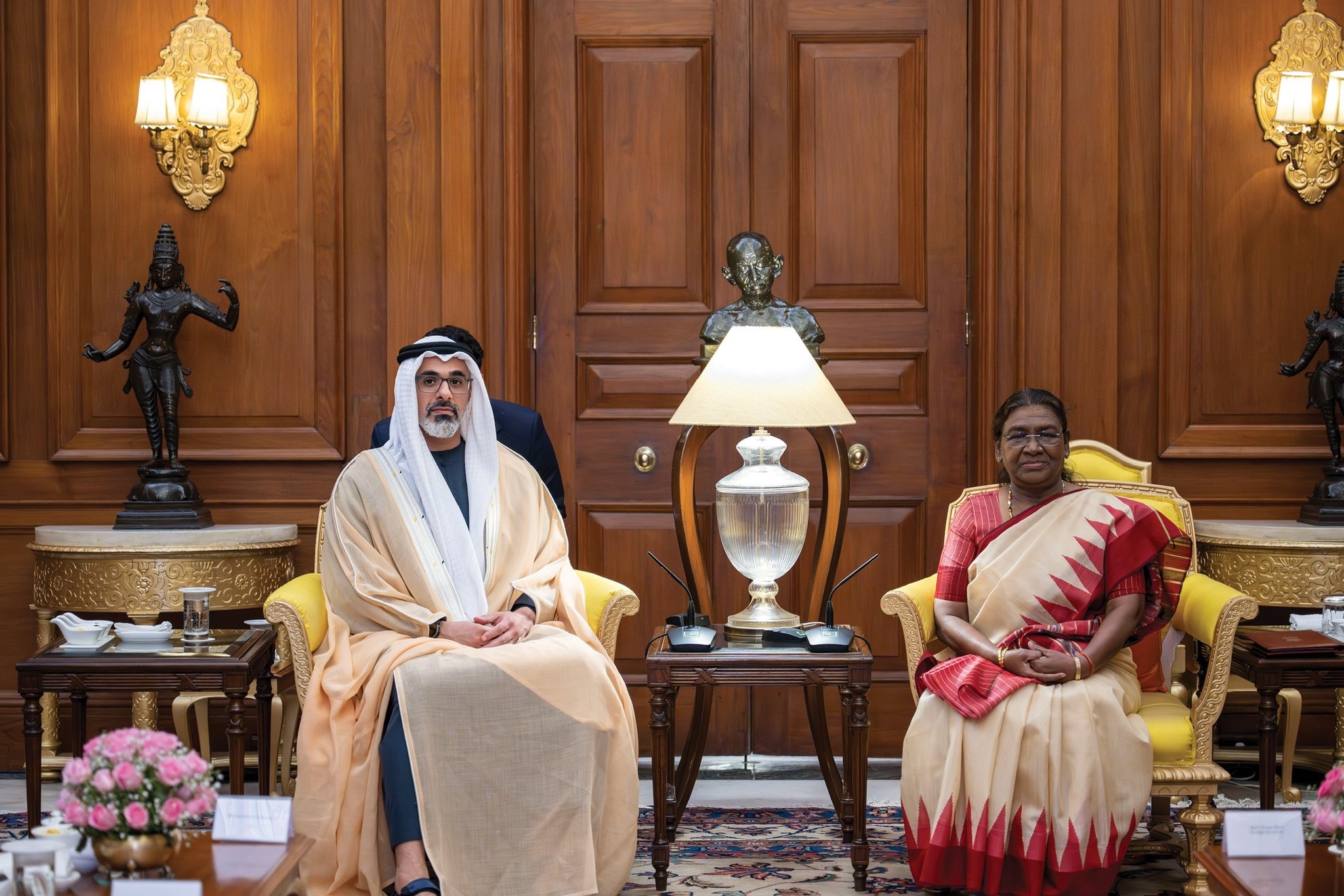 جاء ذلك خلال استقبال فخامة دروبادي مورمو سمو الشيخ خالد بن محمد بن زايد آل نهيان والوفد المرافق في قصر الرئاسة “راشرابتي بهافان” في العاصمة نيودلهي.