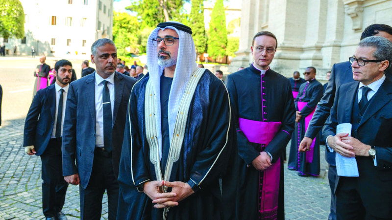 نيابة عن صاحب السمو الشيخ محمد بن زايد آل نهيان، رئيس الدولة، حفظه الله، حضر سمو الشيخ خالد بن محمد بن زايد آل نهيان، ولي عهد أبوظبي، مراسم تشييع جنازة قداسة البابا فرنسيس.