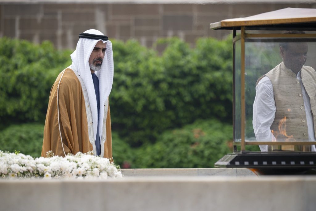 زار سموّ الشيخ خالد بن محمد بن زايد آل نهيان، ولي عهد أبوظبي، ضريح الزعيم الهندي الراحل المهاتما غاندي في منطقة راج غات في العاصمة الهندية نيودلهي.
