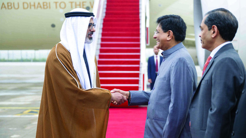وكان في مقدمة مستقبلي سموه لدى وصوله إلى المطار، وزير التجارة والصناعة الهندي، بيوش غويال، حيث جرت لسموه مراسم استقبال رسمية، تم خلالها عزف السلامين الوطنيين لكل من دولة الإمارات العربية المتحدة وجمهورية الهند.