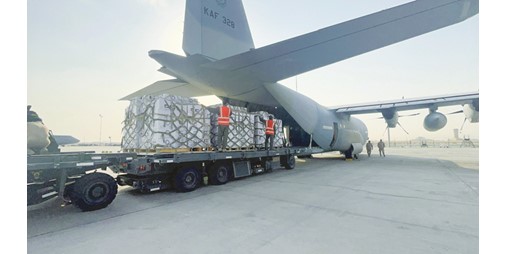 وصلت أمس الطائرة الإغاثية الـ 11 من الجسر الجوي الكويتي الثاني ضمن الحملة الإنسانية «الكويت بجانبكم» لإغاثة الأشقاء الفلسطينيين إلى مطار العريش المصري محملة بـ 10 أطنان من المساعدات الغذائية تمهيدا لإيصالها إلى قطاع غزة.