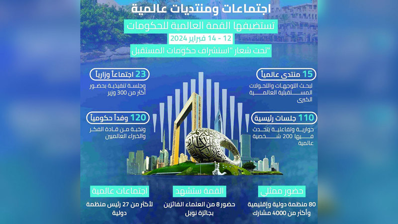 وقال مدير مؤسسة القمة العالمية للحكومات، محمد يوسف الشرهان، إن النسخة الجديدة من القمة العالمية للحكومات تحظى بأهمية كبيرة على الأصعدة كافة، مشيراً إلى أن تواجد عدد كبير من المسؤولين الحكوميين ورؤساء دول ورؤساء حكومات الذين يمثلون طموحات دولهم في تلك القمة، بجانب استضافة رؤساء المنظمات الدولية، يؤكد أهمية هذه الدورة لمناقشة الملفات المطروحة.