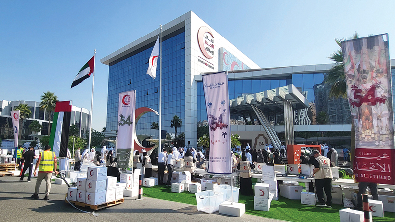 نظّمت هيئة الهلال الأحمر الإماراتي، أمس، فعالية وطنية إنسانية بمناسبة عيد الاتحاد الـ54، تضمنت إعداد 1971 طرداً إغاثياً موجهاً إلى غزة، في مبادرة رمزية تجسّد عام تأسيس دولة الإمارات، وتعكس قيم العطاء والانتماء، وسط أجواء احتفالية عبّرت عن روح المناسبة الوطنية.