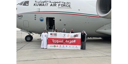 أقلعت اليوم الأحد، الطائرة الإغاثية الـ27 من الجسر الجوي الكويتي متجهة إلى مطار دمشق الدولي محملة بـ40 طنا من المواد الطبية لدعم المنظومة الصحية في سوريا بتنظيم من الجمعية الكويتية للإغاثة بمشاركة عدد من الجمعيات الخيرية والتنسيق مع وزارات الشؤون الاجتماعية والخارجية والدفاع ممثلة بالقوة الجوية الكويتية.