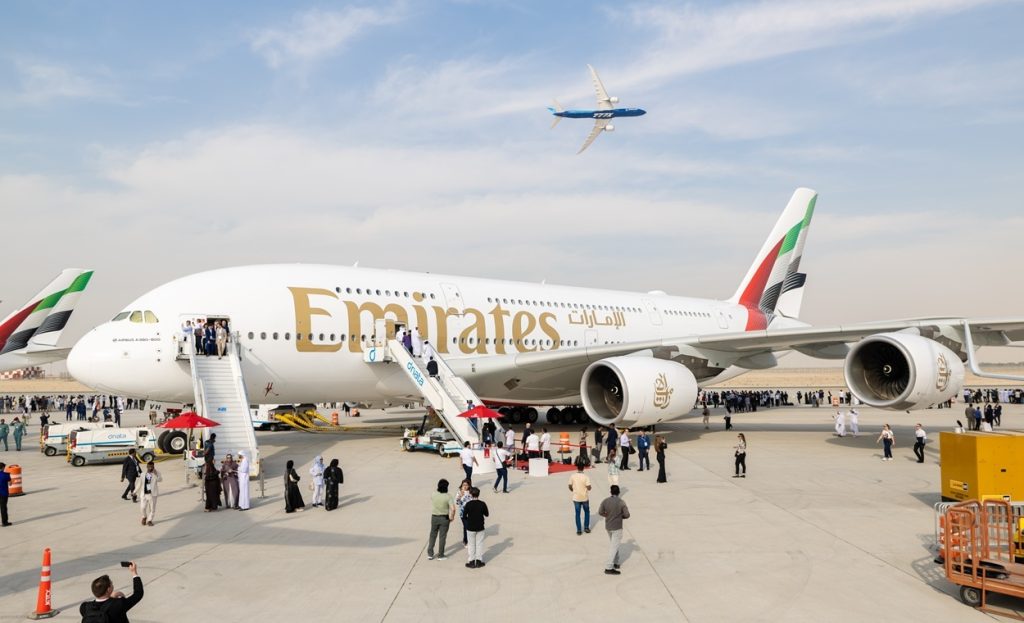 ورفعت طيران الإمارات قيمة التزاماتها في معرض دبي للطيران 2025 إلى 41.4 مليار دولار (نحو 152 مليار درهم) بإضافة طلبية شراء 65 طائرة بوينغ 777-9 و8 طائرات من طراز A350-900.