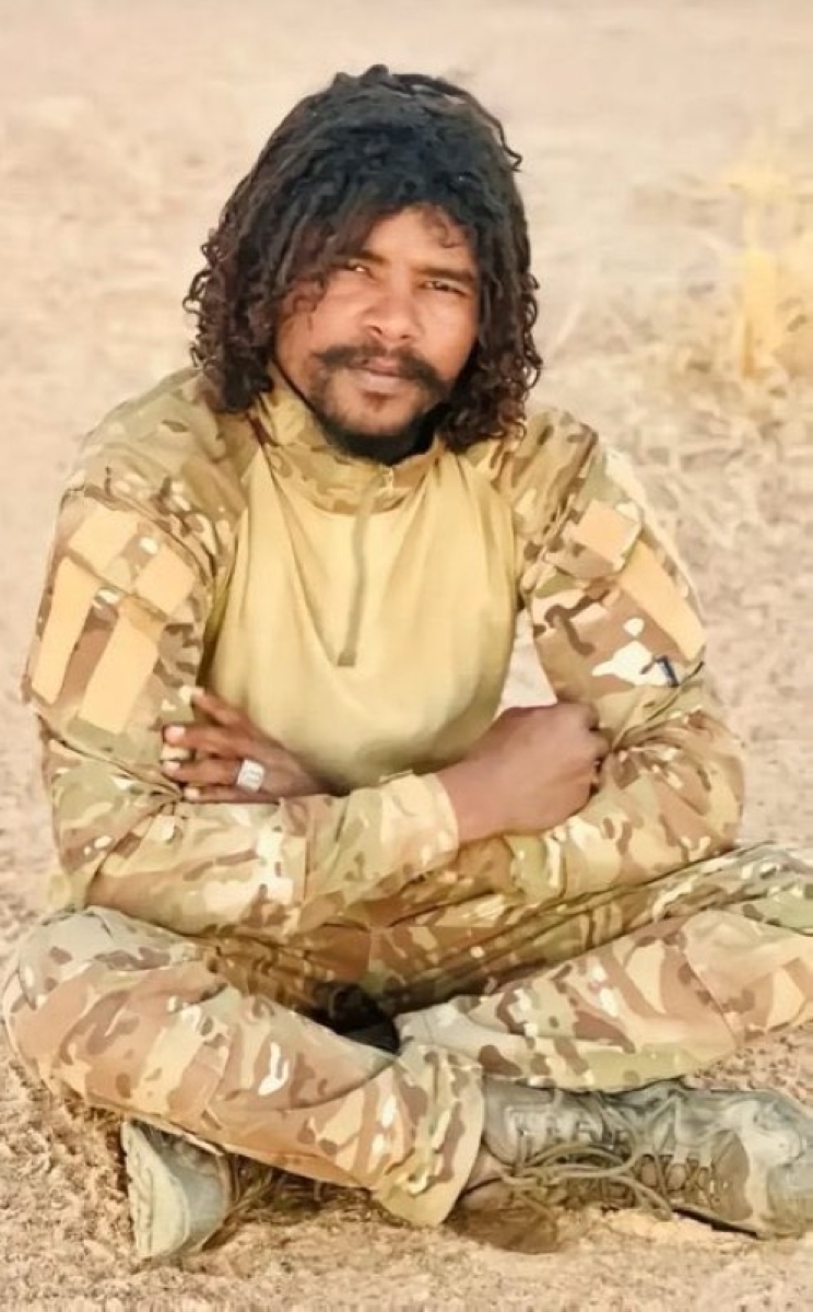 وعرضت المقاطع المصوّرة التي انتشرت له في شبكات التواصل الاجتماعي جرائمه في السودان، وأظهرت بعض تلك المقاطع المصوّرة المزعومة، الرجل يتحدث بلهجةٍ آمرة إلى أسرى ومدنيين، قبل أن يطلق النار عليهم.