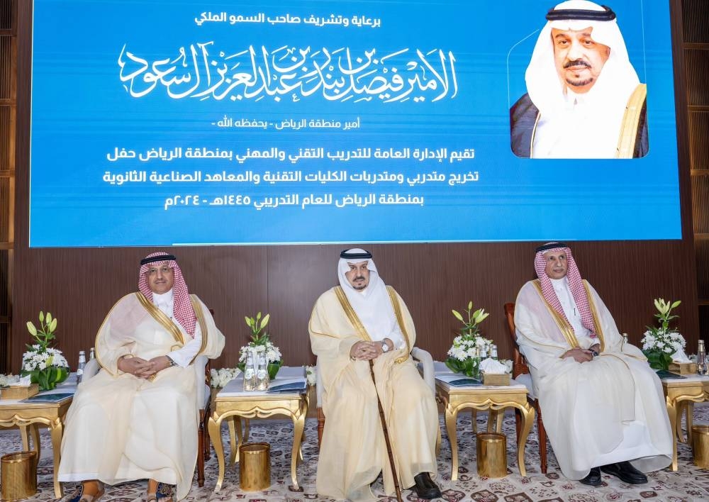رعى أمير منطقة الرياض الأمير فيصل بن بندر بن عبدالعزيز اليوم، حفل تخريج متدربي ومتدربات الكليات التقنية والمعاهد الصناعية الثانوية بمنطقة الرياض للعام التدريبي 1445هـ، في مسرح الكلية التقنية بالرياض.