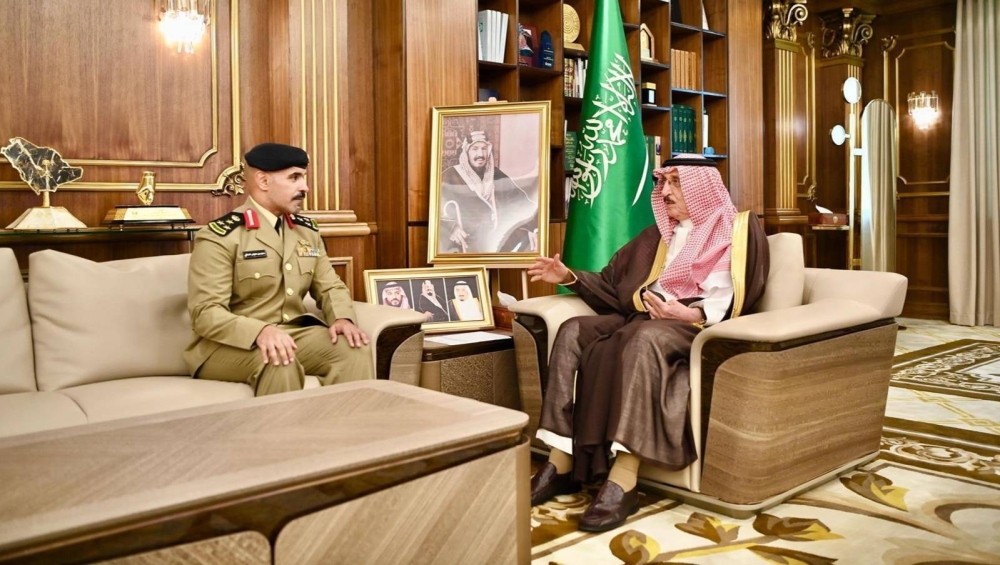 استقبل أمير منطقة جازان الأمير محمد بن ناصر بن عبدالعزيز، في مكتبه اليوم (الإثنين)، قائد قوة أمن المنشآت بالمنطقة العميد سعود بن عايض العتيبي بمناسبة تعيينه قائداً للقوة.