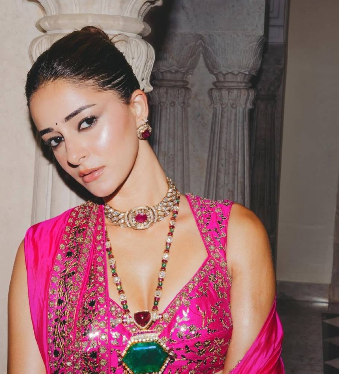 أنانيا بانداي أطلت بفستان هندي تقليدي Lehenga بلون وردي فاقع صُمم خصيصًا لدار Punit Balana.