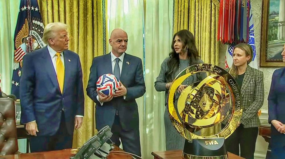 واستعرض جياني إنفانتينو مجسم كأس مونديال الأندية 2025 في البيت الأبيض، وكان المجسم يتكون من درع ومفتاح ذهبي، على أن يتم تسليمه للفائز بلقب المونديال الأول، وسلم المفتاح لـ«ترمب»، على أن يتولى تسليمه لقائد الفريق الفائز.