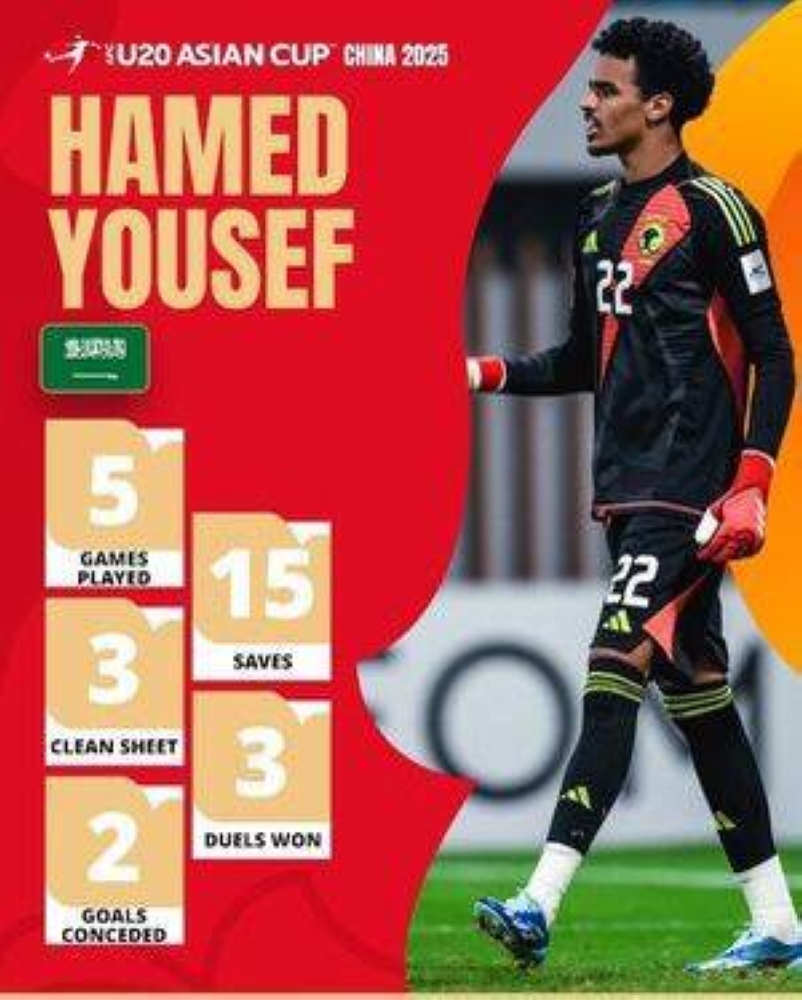 وأضاف الموقع: بفضل طوله الذي يبلغ 195 سم، تألق الشنقيطي كحارس مرمى في كأس آسيا للشباب تحت 20 عاماً 2025 في الصين، حيث حافظ على نظافة شباكه ضد الأردن في دور المجموعات والصين في ربع النهائي وجمهورية كوريا الجنوبية في قبل النهائي.