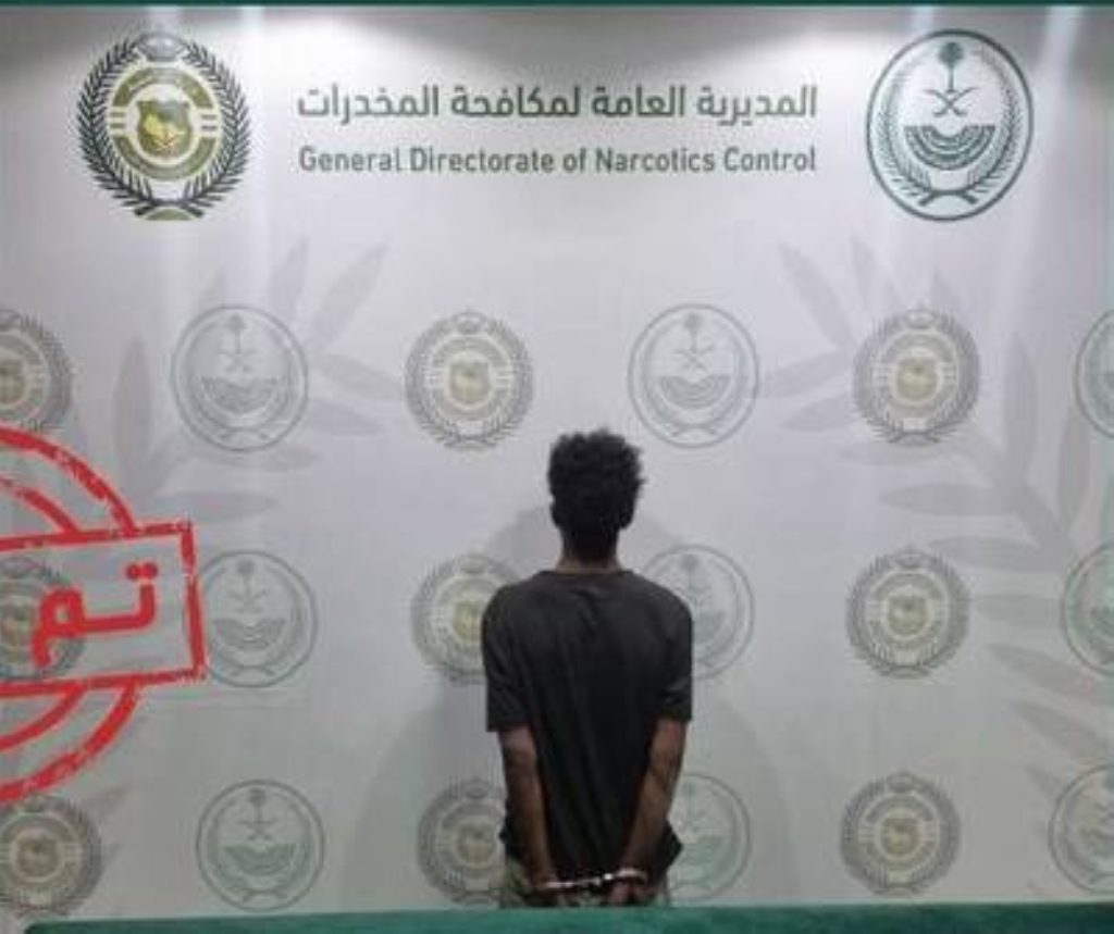 قبضت المديرية العامة لمكافحة المخدرات على مخالف لنظام أمن الحدود من الجنسية الإثيوبية بمنطقة الباحة؛ لترويجه مادة الإمفيتامين المخدر، وأوقف واتخذت الإجراءات النظامية بحقه، وأحيل إلى النيابة العامة.