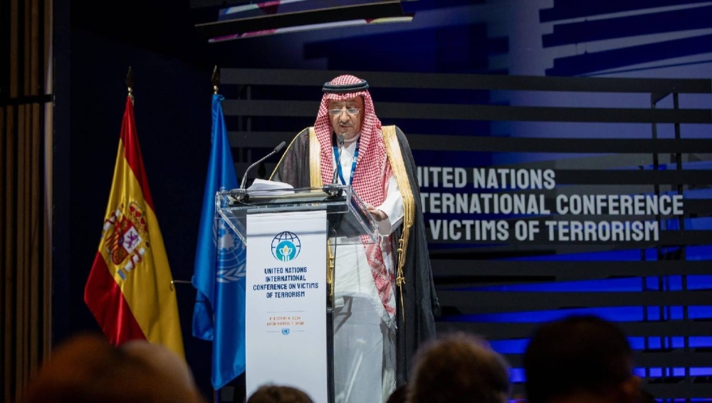 وجدد إدانة المملكة للإرهاب بكافة أشكاله وصوره، مؤكداً أن جميع أعمال وصور الإرهاب إجرامية وغير مبررة بغض النظر عن دوافعها وأهدافها، ومشيراً إلى أن المملكة تساهم من خلال جهودها المختلفة في مكافحة الإرهاب بدعم جهود الأمم المتحدة في إحياء اليوم العالمي لضحايا الإرهاب، وتشارك العالم للاحتفال به، حيث إن إحياء ذكرى ضحايا الإرهاب وحفظ حقوقهم وإنصافهم، وتوفير الدعم والرعاية لهم، ركن أساسي في المواجهة الشاملة للإرهاب.