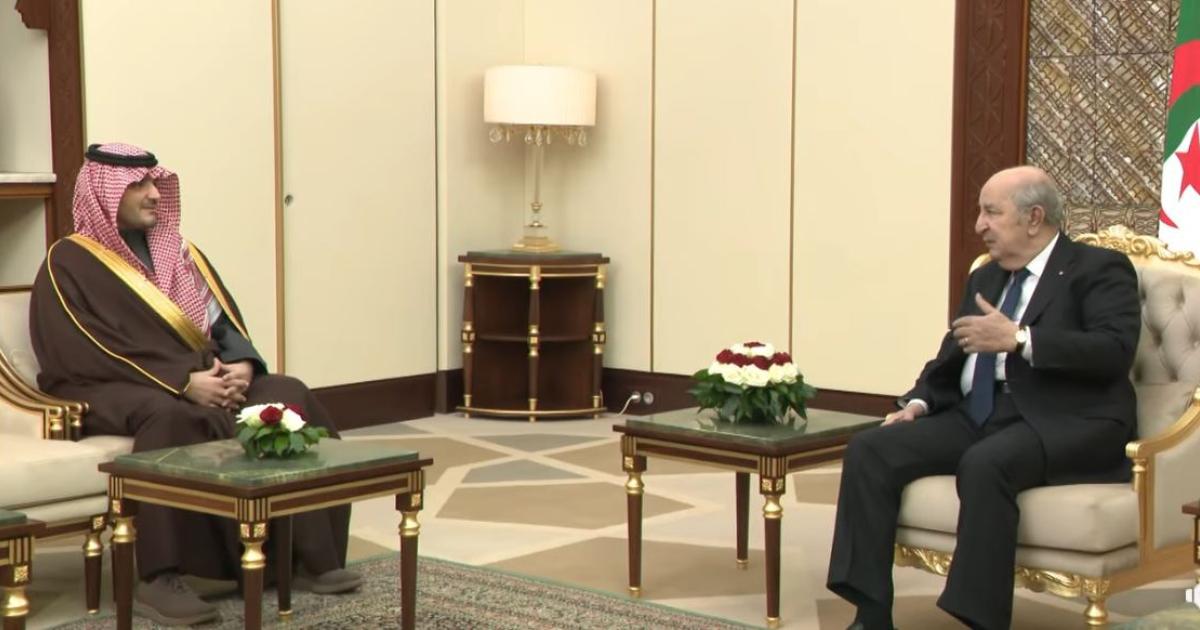 استقبل الرئيس الجزائري عبد المجيد تبون اليوم الاثنين وزير الداخلية السعودي الأمير عبد العزيز بن سعود بن نايف بن عبد العزيز، في زيارة رسمية للجزائر. وتأتي هذه الزيارة في إطار تعزيز العلاقات السعودية الجزائرية وتطوير التعاون الثنائي بين البلدين، خاصة في المجالات الأمنية. ولم يتم الإعلان عن تفاصيل كاملة للمباحثات حتى الآن، لكنها تركز على القضايا ذات الاهتمام المشترك.