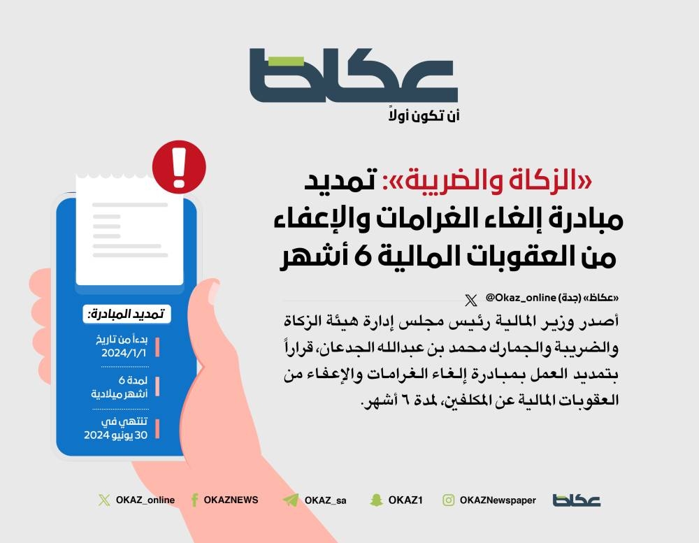الرئيسية»الاخبار»اخبار السعودية»«الزكاة والضريبة»: تمديد مبادرة إلغاء الغرامات والإعفاء من العقوبات المالية 6 أشهر