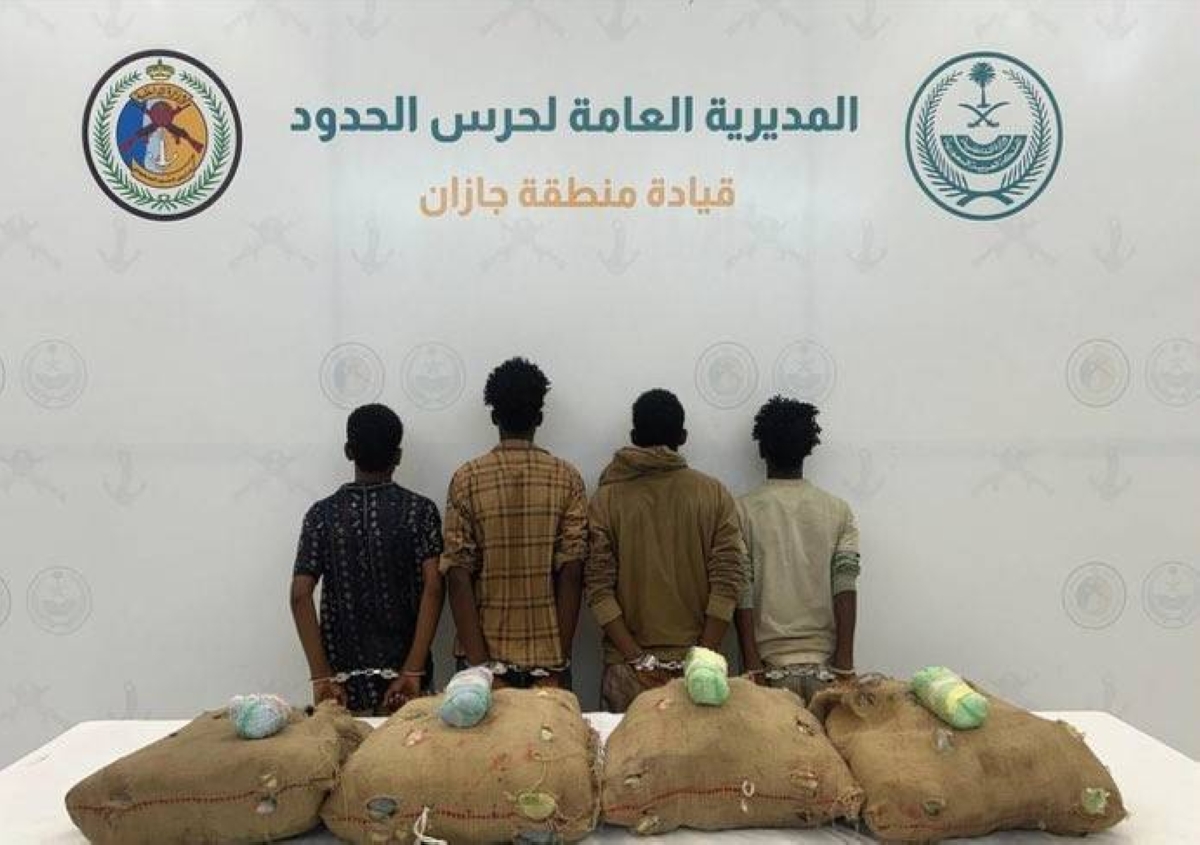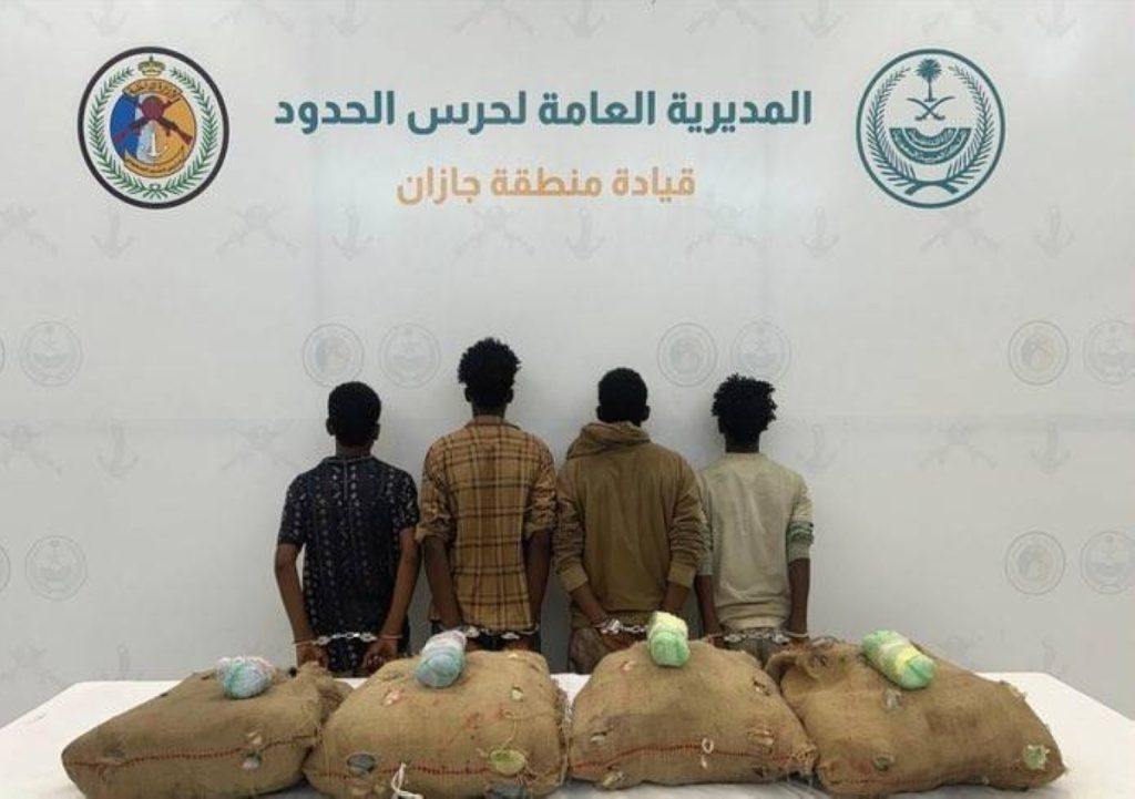 قبضت القوات البرية لحرس الحدود في قطاع الدائر بمنطقة جازان على (4) مخالفين لنظام أمن الحدود من الجنسية الإثيوبية، لتهريبهم (80) كلجم من نبات القات المخدر، وجرى استكمال الإجراءات النظامية الأولية بحقهم، وتسليمهم والمضبوطات لجهة الاختصاص.