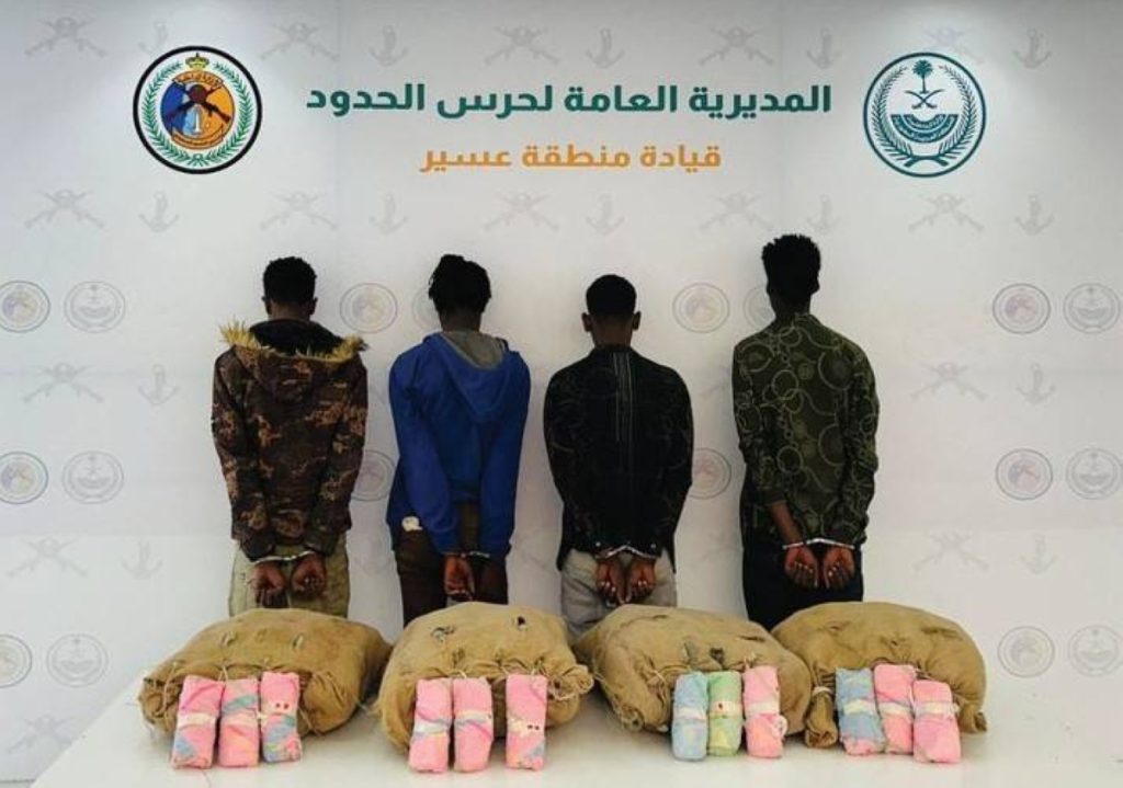 القبض على 4 مخالفين لنظام أمن الحدود لتهريبهم 80 كيلوغراماً من القات المخدر بعسير
