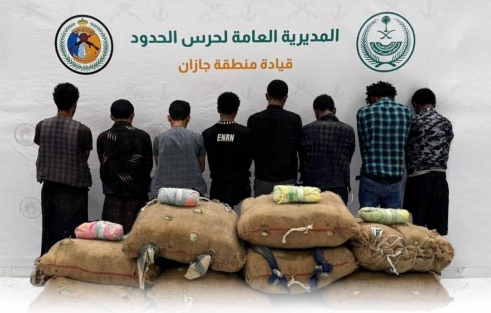 قبضت الدوريات البرية لحرس الحدود في قطاع الدائر بمنطقة جازان على 8 مخالفين لنظام أمن الحدود من الجنسيتين الإثيوبية واليمنية، لتهريبهم 136 كيلوغرامًا من نبات القات المخدر، وجرى استكمال الإجراءات النظامية الأولية بحقهم، وتسليمهم والمضبوطات لجهة الاختصاص.