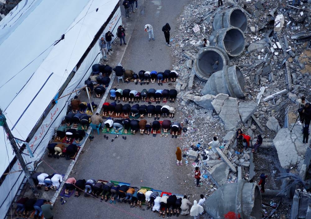 وعايدت إسرائيل المدنيين في غزة بعملية برية في منطقة حي الجنينة في رفح، بهدف توسيع منطقة التأمين الدفاعية في جنوب القطاع. وبحسب المتحدث باسم الدفاع المدني في غزة محمود بصل فإن القصف الإسرائيلي استهدف منزلاً وخيمة تؤوي نازحين في خان يونس جنوب قطاع غزة فجراً، مبيناً أن غارات إسرائيلية عدّة تزامنت مع قصف مدفعي في مناطق مختلفة في قطاع غزة، بينما كان عشرات آلاف المواطنين يؤدون صلاة العيد فوق ركام منازلهم ومساجدهم المدمرة.