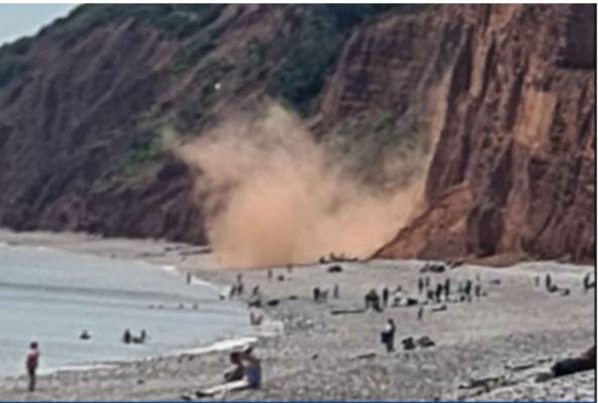 ووفقا لوسائل إعلام بريطانية، كان الشاطئ مكتظا بالعائلات والسياح عندما بدأت الصخور تتساقط فجأة من المنحدر الطيني الذي يعلو الشاطئ، تصاعدت أصوات الصراخ بينما هرع المصطافون للابتعاد عن منطقة الانهيار، حيث تسببت الصخور المتساقطة في إثارة سحب من الغبار وتطاير الحطام.