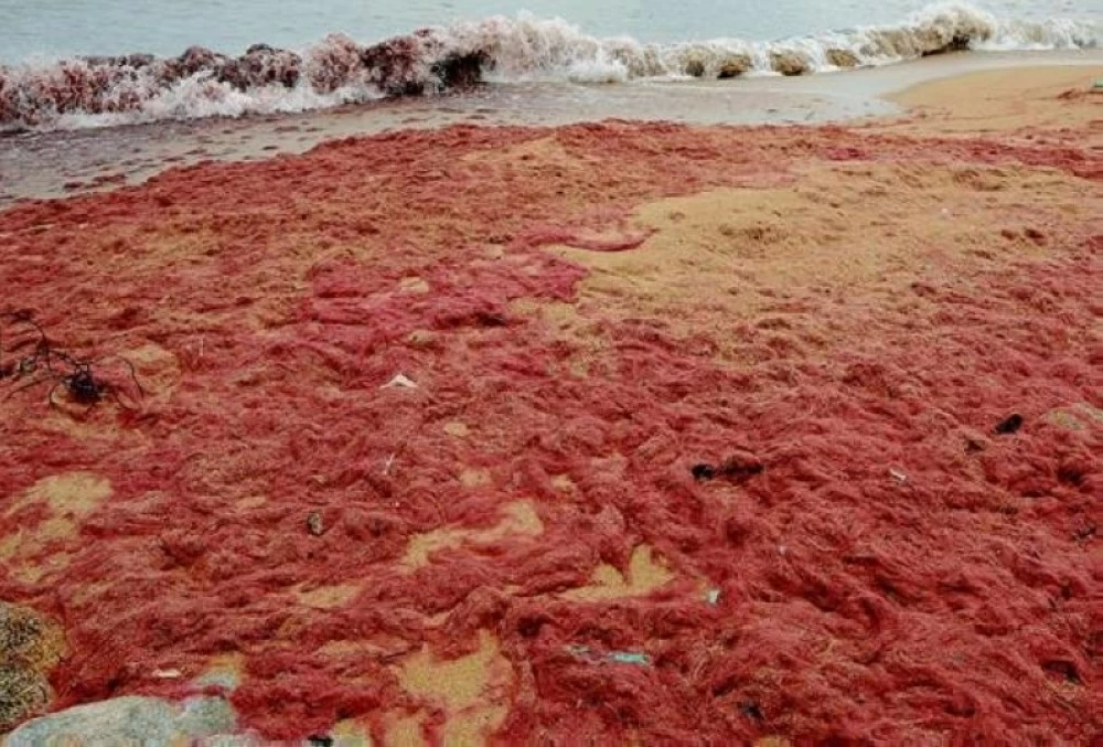 Red algae blooms have begun appearing on the beaches since early November, driven by strong currents from the Indian Ocean and climatic factors, according to reports from the ministry.