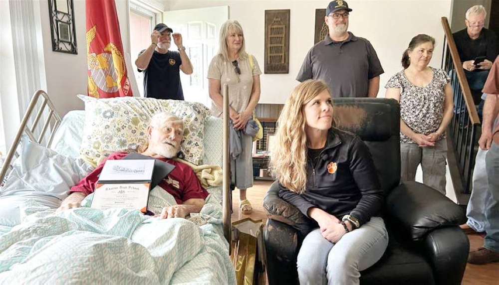 حقق أحد قدامى المحاربين في مشاة البحرية الأمريكية، حلم حياته، ونال شهادة الدراسة الثانوية، أثناء إقامته في دار للمسنين وسط عائلته.