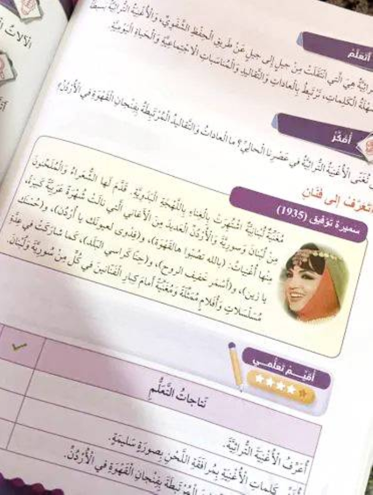 وبينما دافع مؤيدون عن المنهج باعتباره يرسخ الهوية الثقافية العربية، اعتبر آخرون أن هناك شخصيات تاريخية أكثر أهمية يجب أن تحظى بالاهتمام. وأوضح المركز الوطني لتطوير المناهج، أن المنهج يغطي الصفوف من الأول حتى الخامس، ويتناول مواضيع فنية متنوعة.