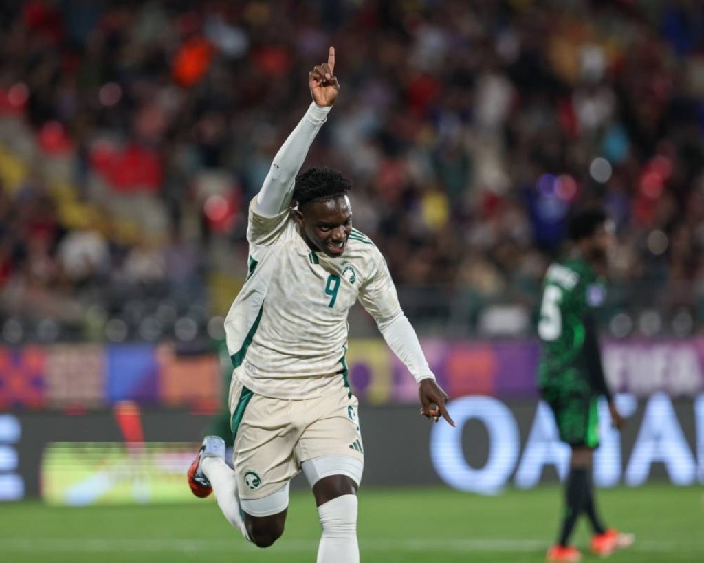 وقدم الفريقان مباراة مثيرة في تالكا، حيث افتتحت نيجيريا التسجيل عبر نصيرو صالحو، فيما أحرز عمار اليهيبي هدف التعادل للسعودية، قبل أن يضيف آموس أوتشوتشي الهدف الثاني للنسور، لتنتهي أحداث الشوط الأول بنتيجة 2-1.