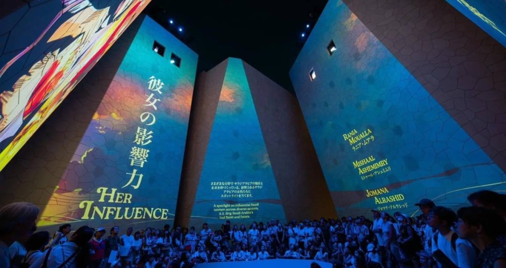 ويحتفي العرض بقصص 3 نساءٍ سعوديات رائدات، وهنَّ: مؤسِّسة ورئيسة أكاديمية زادك السعودية للطهي رانية معلا، ومهندسة الفضاء ومؤسِّسة شركة مشاعل إيروسبيس مشاعل الشميمري، والرئيس التنفيذي للمجموعة السعودية للأبحاث والإعلام (SRMG) رئيس مجلس أمناء مؤسسة البحر الأحمر السينمائي جمانا الراشد، وذلك من خلال مزيجٍ مبتكر بين السرد البصري لفنّ المانجا وأحدث تقنيات الإسقاط الضوئي؛ ليوجه أنظار الزوّار بين ثنايا جدران الباحة صعوداً باتجاه قمّتها التي تعانق سماء إكسبو 2025 أوساكا؛ للتأمل والتفكير والاستمتاع بقصص تلك النساء المُلهمات، مركزاً على أهم المحطات والنقاط الفارقة في مسيرتهنّ؛ لتشجيع الزوّار على فهم الفروقات والاختلافات بين الثقافات، والبناء عليها لاستخلاص القيم الإنسانية المشتركة بين الشعوب.