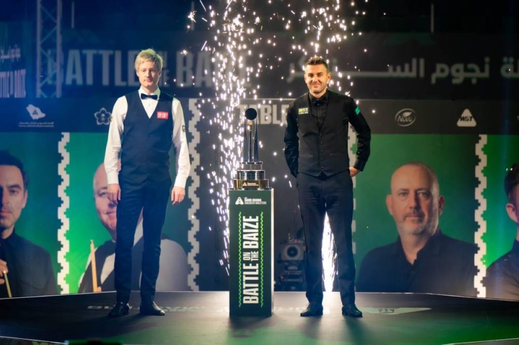 تأهل الإنجليزي «روني أوسيلفان» والأسترالي «نيل روبرتسون» إلى نهائي بطولة الماسترز للسنوكر، والتي تستضيفها المملكة للمرة الثانية في جدة في الصالة الرياضية بمدينة الأمير عبدالله الفيصل الرياضية، بعد مواجهتين مثيرتين في نصف النهائي أمس (الجمعة)، وسط حضور جماهيري وإعلامي لعشاق السنوكر.
