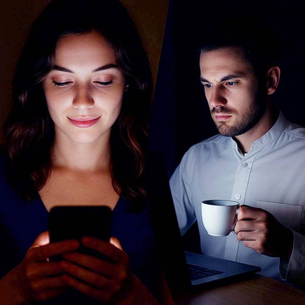 وفقاً لدراسة جديدة من جامعة بورتسموث البريطانية، يبدو أن الذين يفضلون السهر هم الأكثر عرضة للدخول في علاقة مضطربة مع هواتفهم الذكية ووسائل التواصل الاجتماعي. ويظهر هذا الاضطراب في القلق عند الابتعاد عن الهاتف، وإهمال المسؤوليات اليومية لصالح التصفح، والتحقق القهري من الإشعارات. الدراسة تميّز كذلك بين إدمان الهاتف وإدمان وسائل التواصل الاجتماعي؛ فالأول يتجلّى في التعلّق بالأداة نفسها، أما الثاني في الاستخدام المفرط وغير المنضبط للتطبيقات بشكل يخلّ بالتوازن اليومي.