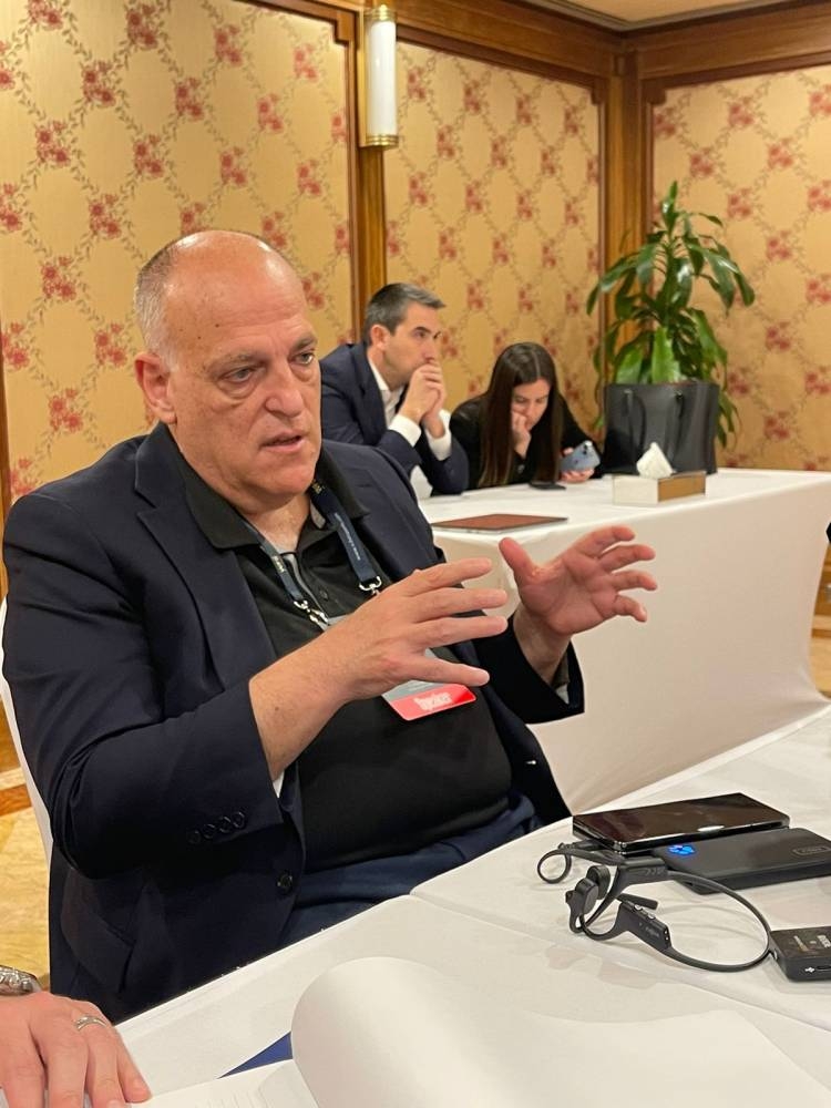 لا يمكن أن يتواجد خافيير تيباس مع الصحفيين بدون الحديث عن قضية «السوبرليغ» والتي من المنتظر أن يتم البت فيها بتاريخ 21 من هذا الشهر. يقول تيباس: «فلورنتينو بيريز رجل لا يخسر بسهولة ويحب الفوز دائماً. مهما كان قرار المحكمة سيجد بيريز طريقة أو أخرى للمضي قدماً في تنفيذ مشروعه الذي يعمل عليه منذ 2003. الصراع في هذه القضية سيكون طويلاً جداً».