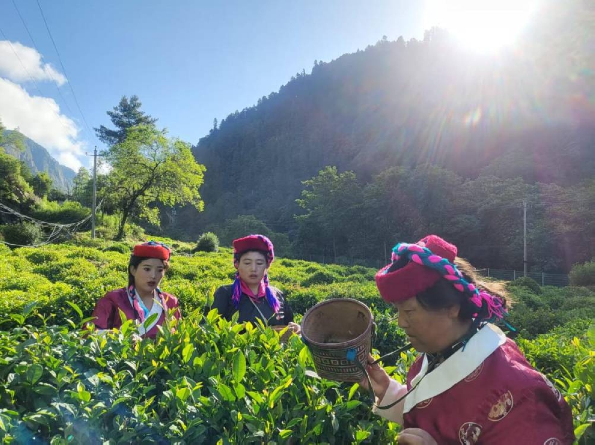 تُطوّر منطقة شيزانغ ذاتية الحكم في الصين صناعاتٍ تتماشى مع الظروف المحلية لتعزيز إحياء الريف. وتتمتّع مقاطعة ميدوغ في مدينة نينغتشي ومدينة تسونا في شانان ببيئتين بيئيتين ممتازتين، وهما مُلائمتان تماماً لزراعة الشاي. وفي الصورة عمال يرتدون الزي الصيني التقليدي أثناء زراعتهم للشاي بالمقاطعة. (إيكونومي دايلي الصينية).