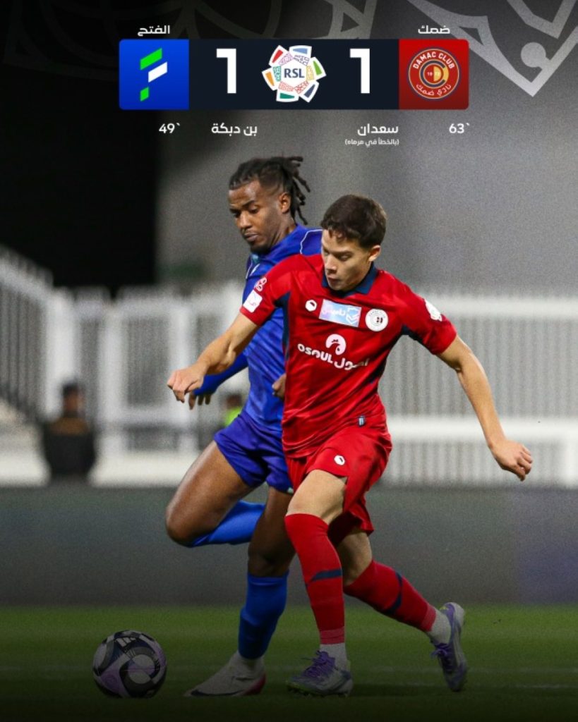 وتقدم سفيان بن دبكة للفتح في الدقيقة (47)، قبل أن يعادل مروان سعدان لضمك في الدقيقة (63).