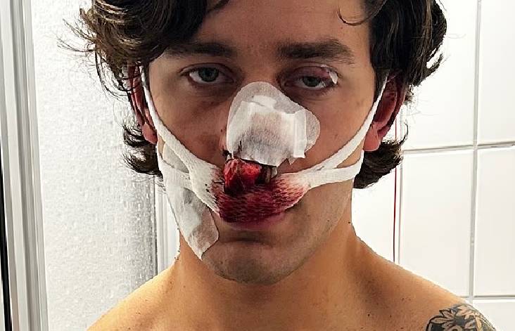 العارض جون رودات (21 عاماً)، كان في عطلة عندما تدخل لمنع الاعتداء على امرأتين، قبل أن يتعرض للطعن بسكين بطول 6 بوصات في وجهه، ما استدعى جراحة عاجلة.
