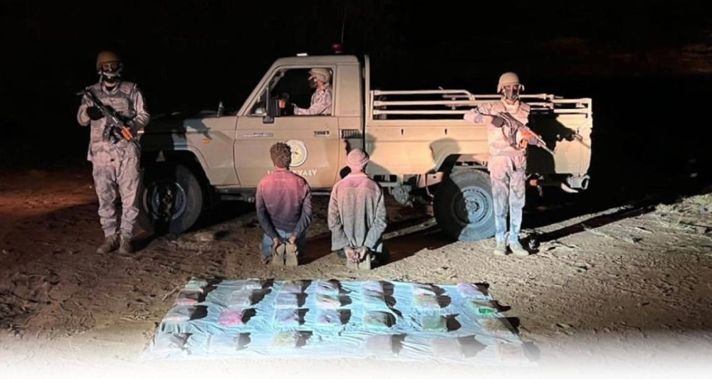 قبضت الدوريات البرية لحرس الحدود في قطاع ظهران الجنوب بمنطقة عسير على مخالفين لنظام أمن الحدود من الجنسية الإثيوبية، لتهريبهما (29) كيلوغراماً من مادة الحشيش المخدر، وجرى استكمال الإجراءات النظامية الأولية بحقهما، وتسليمهما والمضبوطات لجهة الاختصاص.