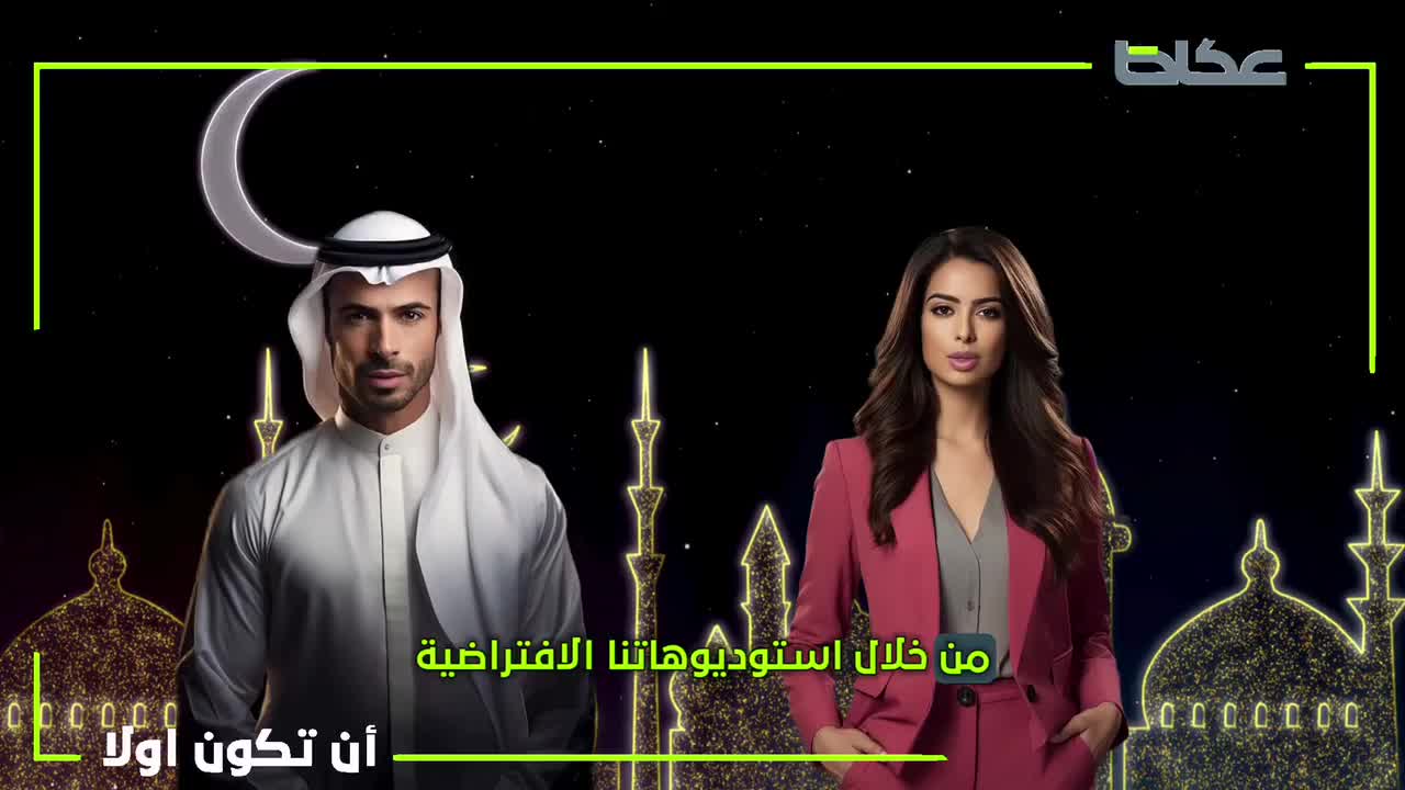 «عكاظ» عبر مُذِيْعَيْهَا «نوف» و«عزام» بالذكاء الاصطناعي من خلال استوديوهاتنا الافتراضية.. تهنئ خادم الحرمين الشريفين وولي العهد والمواطنين والمقيمين والعالمين العربي والإسلامي بمناسبة حلول شهر رمضان الكريم. كل عام وأنتم بخير.